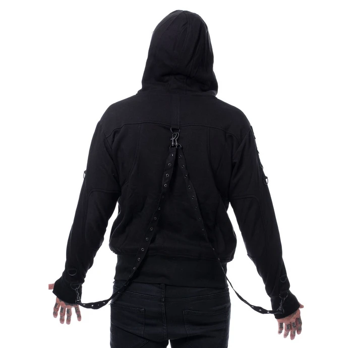 Stylish men’s hoodie, by Vixxsin. Features: Zip fastening Adjustable hoodTwo side open pockets Elastic bottom hem and cuffs 2x decorative detachable straps Color: black. Composition: 80% cotton, 20% polyester. Approx. dimensions in centimeters (CIRC. is 2x width) The product was measured on a flat surface.