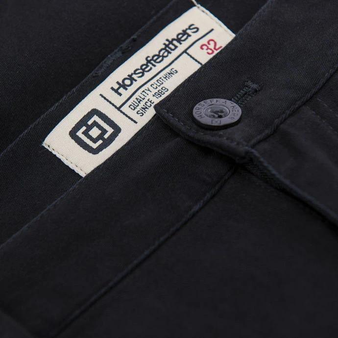 men’s HORSEFEATHERS fabric trousers Pants Cut – SLIM. The pants are lightly prewashed. two front and two back pockets the fly is closeable by knob and a zipper loops at the waist for belt Color: black. Composition: 98% cotton, 2% elastane. Product dimensions in centimeters approx .: ( GIRTH is 2x width)
