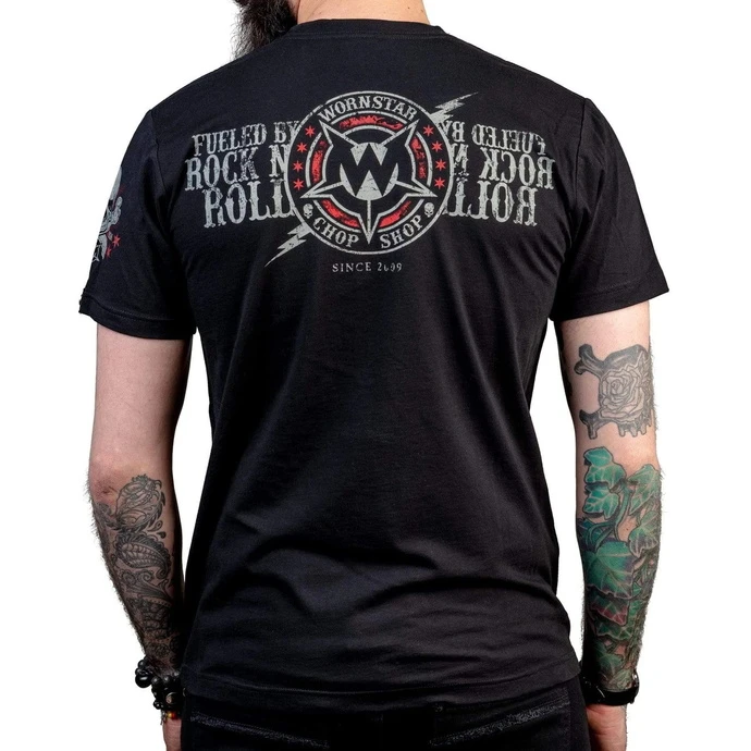 Men’s stylish t-shirt with a quality print. Designed in U.S.A. Composition: 100% cotton. Brand: WORNSTAR. Color: black Wash inside out, in a gentle program at low temperatures. Approximate dimensions in cm (CIRC. is 2x width)
