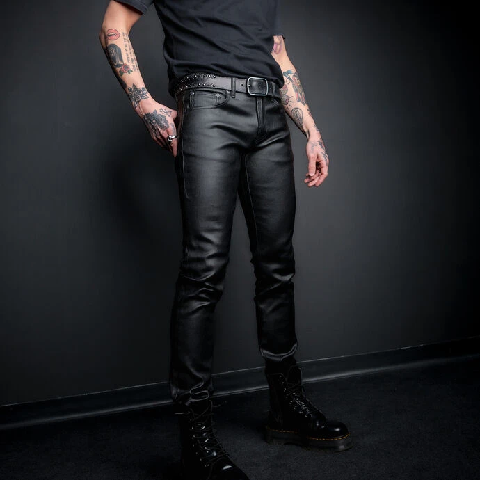 Slim-fit cut, low waist, narrow leg cut.