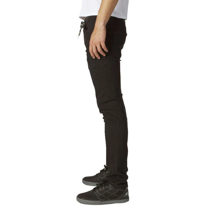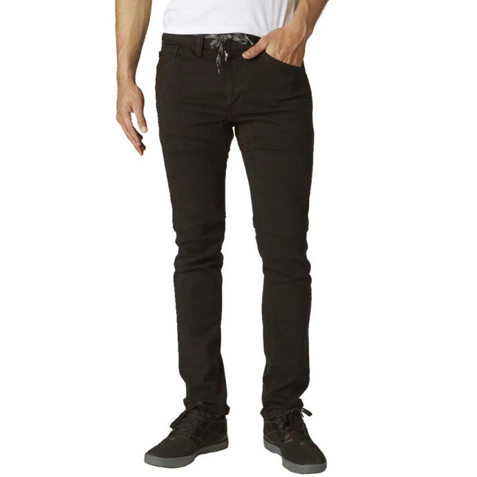 Men’s denim trousers, brand: FOX. Color: black. Features two front open pockets two back pockets slit with button and zipper belt loops Composition: 91% cotton, 7% polyester, 2% elastane. Please note that the dimensions stated in the table below are only approximate and that the actual sizes between different products and styles may vary.The table below shows in centimeters the approx. dimensions / CIRC. of the person that will wear this product. (Men’s FOX products – pants and shorts)