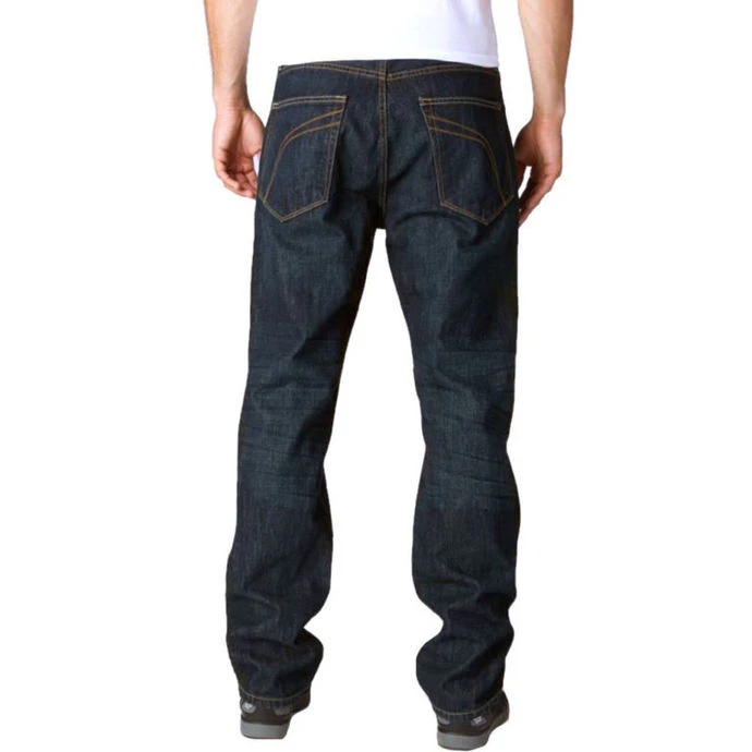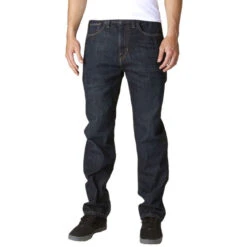 Men’s denim trousers, brand: FOX. Color: dark blue. Features two front open pockets two back pockets slit with button and zipper belt loops Composition: 100% cotton. Please note that the dimensions stated in the table below are only approximate and that the actual sizes between different products and styles may vary.The table below shows in centimeters the approx. dimensions / CIRC. of the person that will wear this product. (Men’s FOX products – pants and shorts)