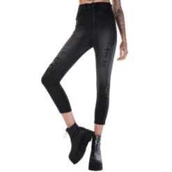 ladies’ textile (denim) pants with heightened waist. DISTURBIA brand. Pants are pretreated – WASHED – and have a casual look – they are deliberately frayed in several places – see photo. Pants are also slightly elastic – adaptable. Color: gray – prewashed. Features: two front open pockets two back pockets button and zipper fly opening belt loops at the waist frayed areas on the front side embroidery on the rear pocket Composition: 98% cotton, 2% elastane. Please note that the dimensions stated in the table below are only approximate and the actual sizes between different products and styles may vary. (This is an approximate perimeter of the product. Measured in cm. The width is half the circumference).