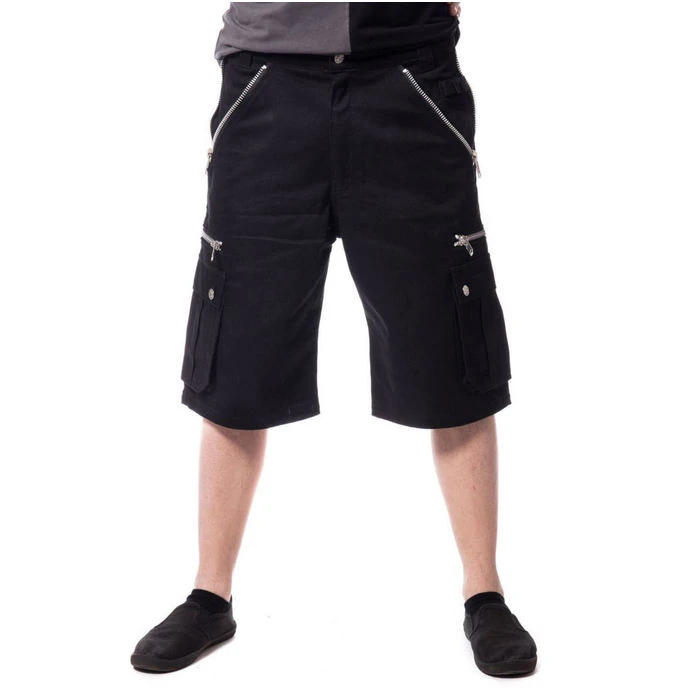 Men’s stylish shorts brand VIXXSIN. Features: two front pockets with a robust zipper two back pockets with a popper flap two side pockets fly opening with button and zipper loops at the waist for belt Composition: 95% cotton, 5% spandex, metal accessories. Color: black. Approximate dimensions in cm approx. (GIRTH is 2x width)