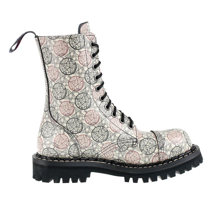 STEADY´S 10-hole shoes made of a genuine leather coated with paint in various shades, the sole is made of a quality rubber. Color: mix. Quality leather boots! Shoe height approx .: 22.5 cm. Heel height approx .: 3.5 cm. Boots have steel toe cap for protection. Composition: genuine leather, rubber sole, metal reinforcement.