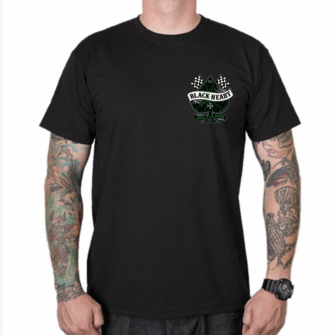 Men’s original T-shirt with black print on both sides. Brand Black Heart. Material: 100% cotton. The first photo shows the back of the shirt. Dimensions in cm approx.: