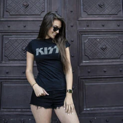 T-shirt Metal Women’s Kiss – Logo Diamante – ROCK OFF