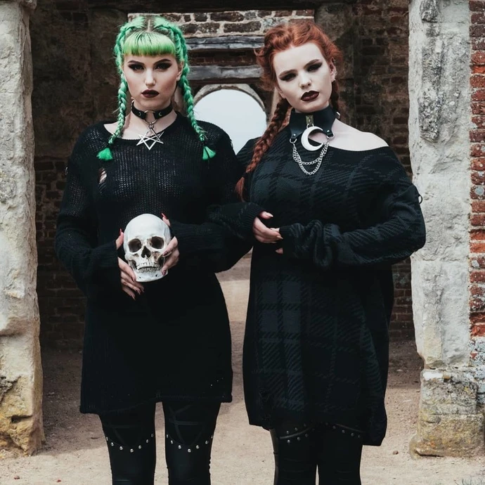 Unisex (men’s / women’s) jumper, by KILLSTAR. The material is elastic, very flexible. The jumper is deliberately ripped on several parts (the holes will not expand). Color: dark grey, black. Composition: 100% acrylic. Please note that the dimensions stated in the size chart are only approximate. The actual sizes may slightly vary between different products (or styles).