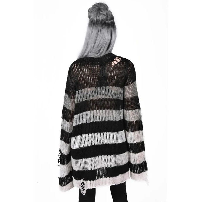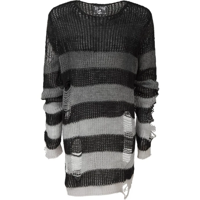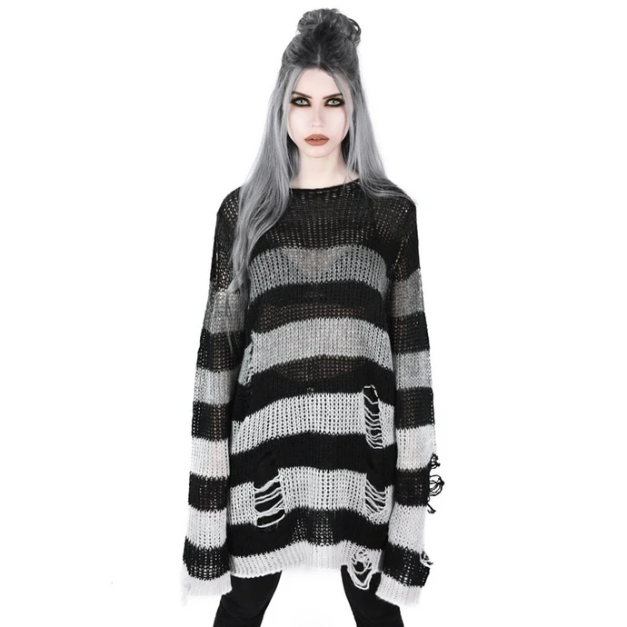 UNISEX (women’s / men’s) knitted jumper with loose fit, by KILLSTAR. The material is elastic, very pliable. The jumper is deliberately ripped on several parts (the holes will not expand). Composition: 100% acrylic. Please note that the dimensions stated in the size chart are only approximate. The actual sizes may slightly vary between different products (or styles).