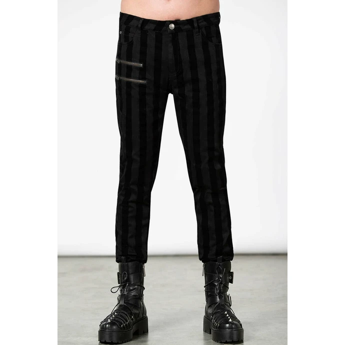 The darker stripes on the trousers have a velvety finish.