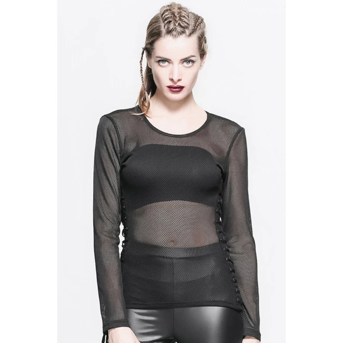 Stylish UNISEX (women’s/men’s) slightly elastic fishnet t-shirt with long sleeves, by DEVIL FASHION. Composition: 100% polyamide. Color: black. Measures were provided by the producer. Please note that the dimensions stated in the size chart are only approximate. The actual sizes may slightly vary between different products (or styles). Approx. dimensions in centimeters