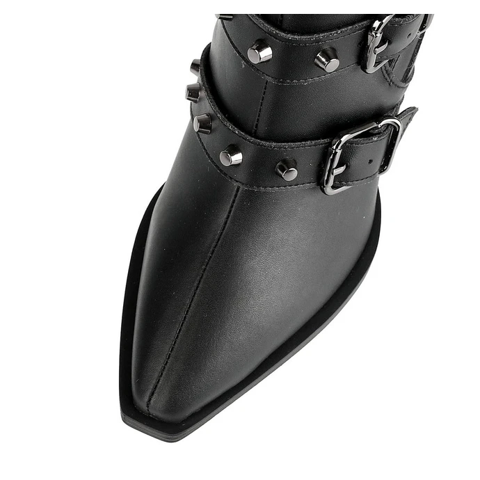 Women’s comfortable “VEGAN” shoes by ALTERCORE. Zipper on the back. The total height of the shoe is approx .: 19cm. Heel height approx .: 7.5cm. Heel height approx.: 0.7cm. Composition: synthetic leather (PU), polyester, metal buckles, rubber sole – 100% vegan. Color: black – matte.