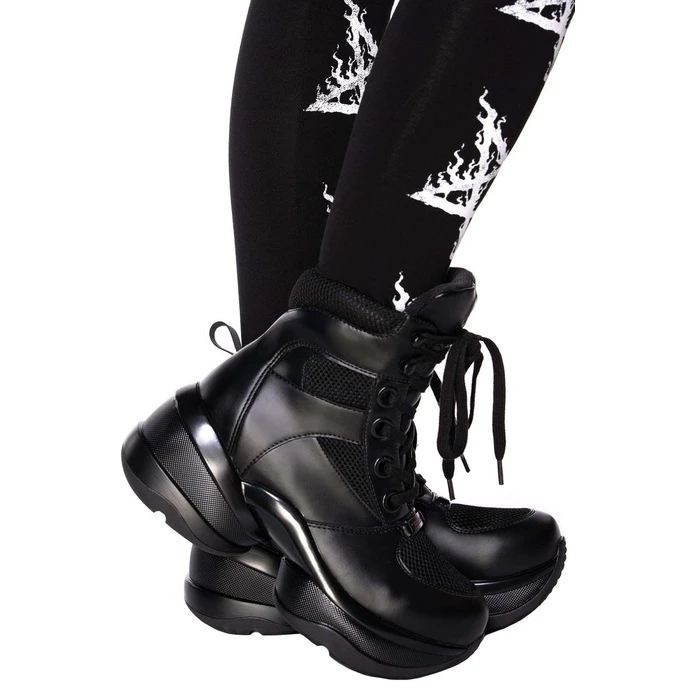Stylish elegant women’s walking shoes, by KILLSTAR. Composition: polyester, polyurethane (synthetic leather), PVC – 100% VEGAN. Total height of the shoe approx.: 23cm. Heel height approx .: 7cm. Height of the sole (front) approx .: 3 cm. Color: black – matt.