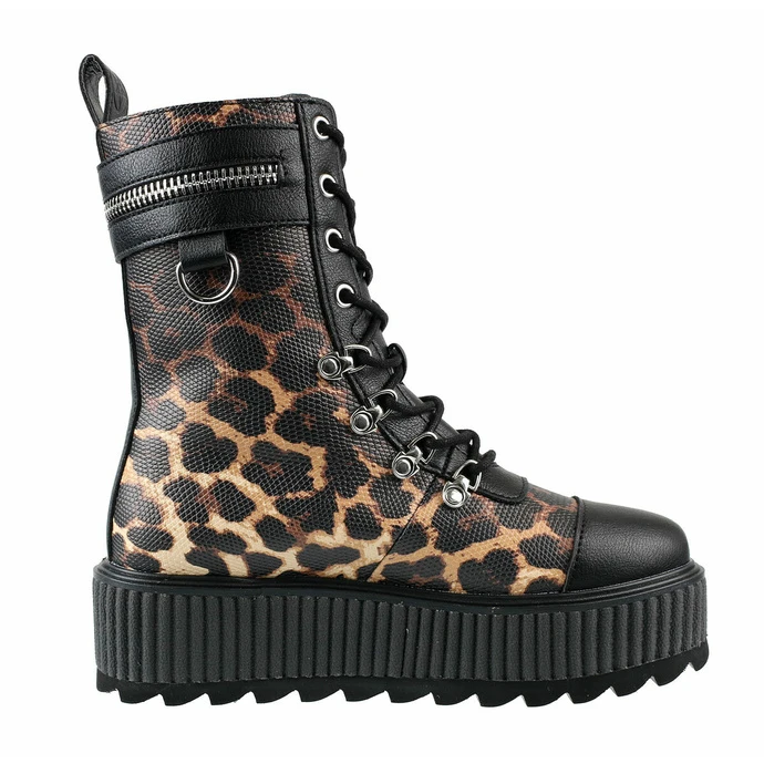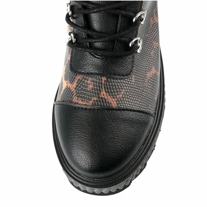 Stylish elegant women’s walking shoes, by KILLSTAR. Composition: polyester, polyurethane (synthetic leather), PVC – 100% VEGAN. Total height of the shoe approx .: 26cm. Heel height approx .: 5cm. Height of the sole under the toes approx .: 4cm. Color: black with print – matt.