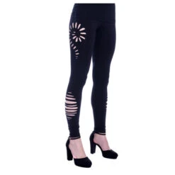 Women’s slightly elastic, black leggings with an original design, by INNOCENT