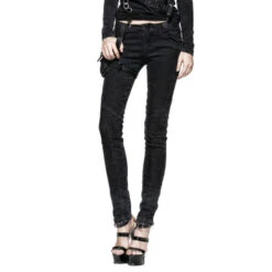 Stylish women’s slightly elastic pants, by PUNK RAVE. Features: 2x front and 2x back pockets Button and zipper closure fly Belt loops at the waist 14 cm zipper fastening at the bottom of trousers legSomething extra: small removable pocket for odds and endsComposition: 98% cotton, 2% spandexColor: washed out dark grayPlease note that the dimensions stated in the size chart are only approximate. The actual sizes may slightly vary between different products (or styles).