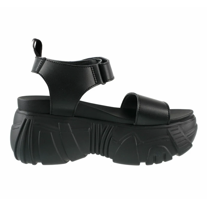 women’s walking sandals brand ALTERCORE. The total height of the shoe is approx .: 16cm. The sole height (heel) approx.: 9cm. The sole height (front) approx.: 6.5cm. Composition: synthetic leather (PU), polyester, rubber sole – 100% VEGAN. Color: black – matt.